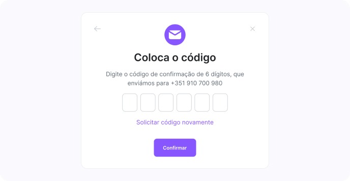 Depois de ativar a 2FA, será possível confirmar o início de sessão com um código enviado por SMS para o número registado no perfil.