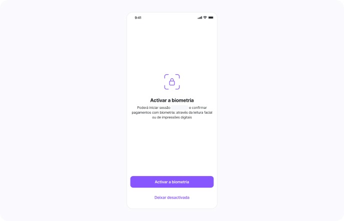 Após ativar a autenticação de dois fatores, pode também ativar a biometria na aplicação móvel do MC Pay.