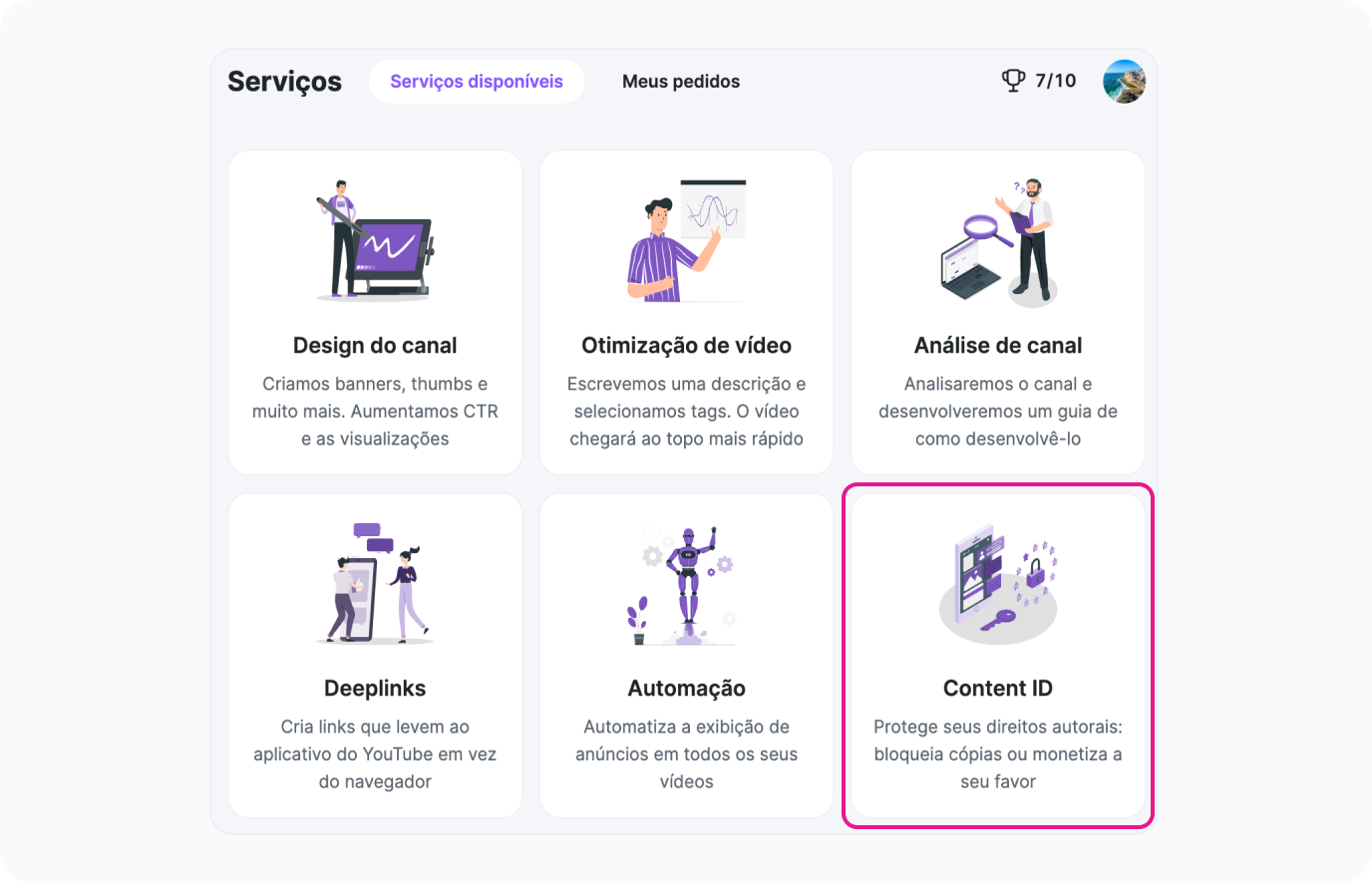 Secção onde pode encomendar serviços de promoção, design e otimização para o seu canal.
