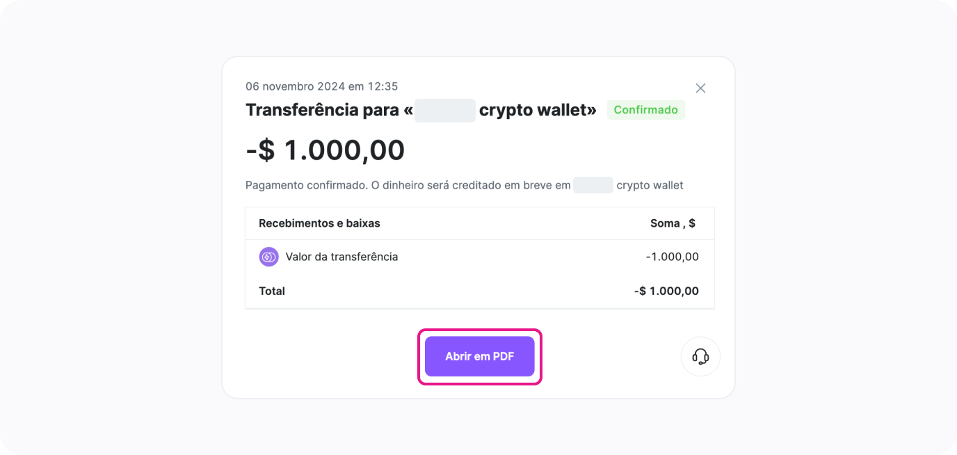 Para cada transação confirmada, é possível descarregar uma fatura (invoice).