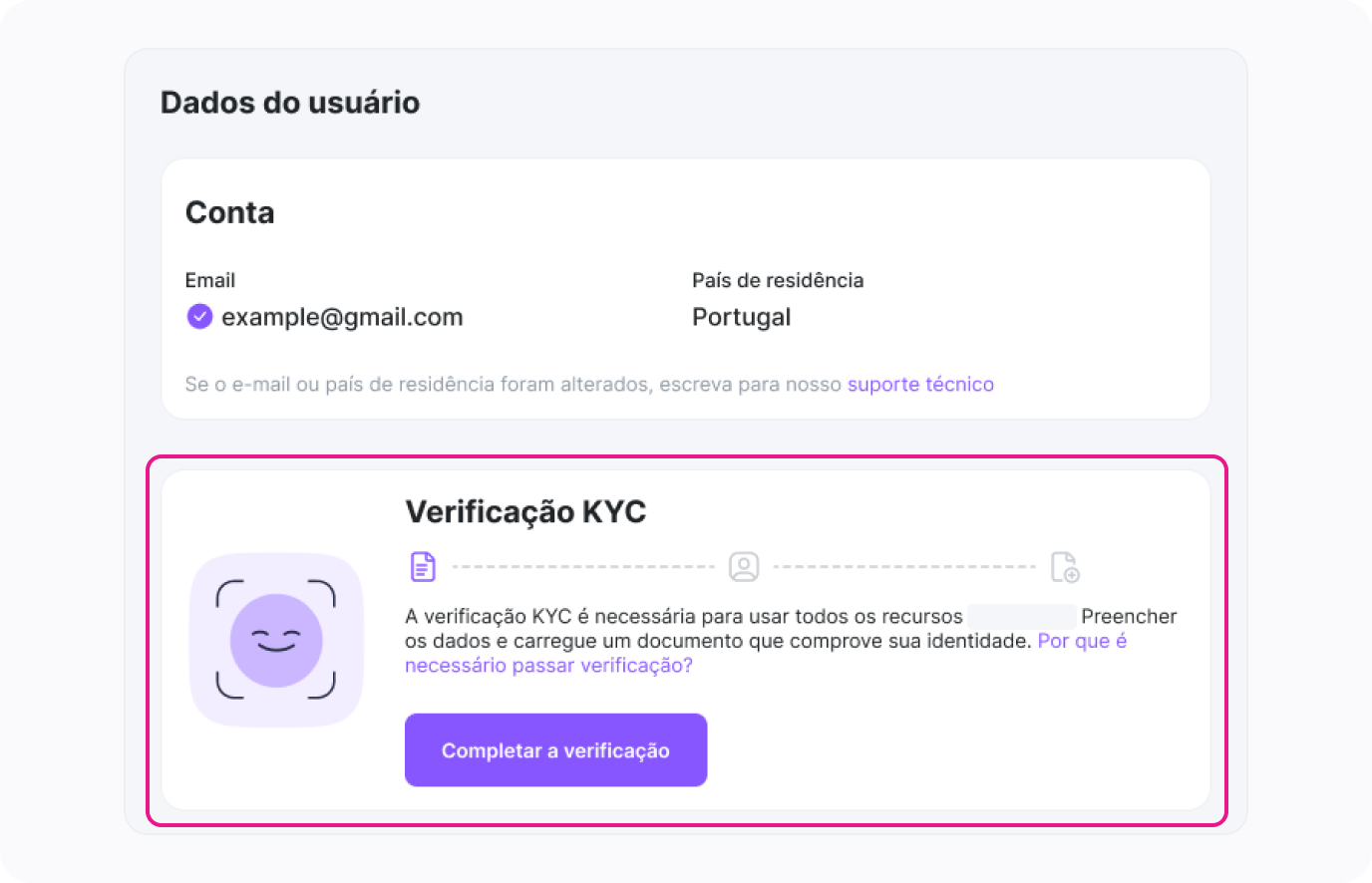 Para poder movimentar fundos, é necessário concluir a verificação: preencher os dados legais e confirmar a identidade.