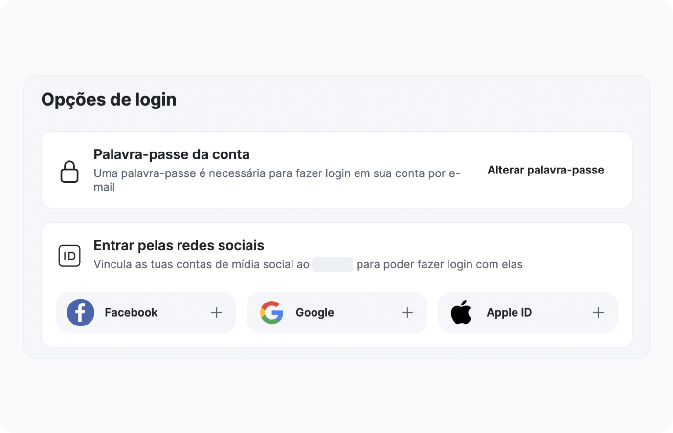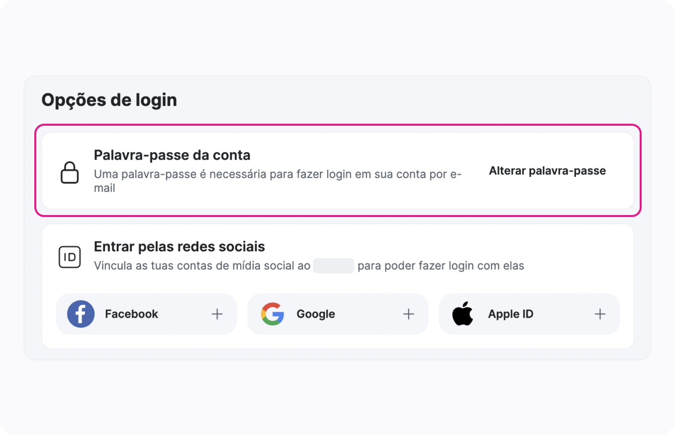 Nesta seção, é possível alterar a palavra-passe ou associar redes sociais para acesso rápido.