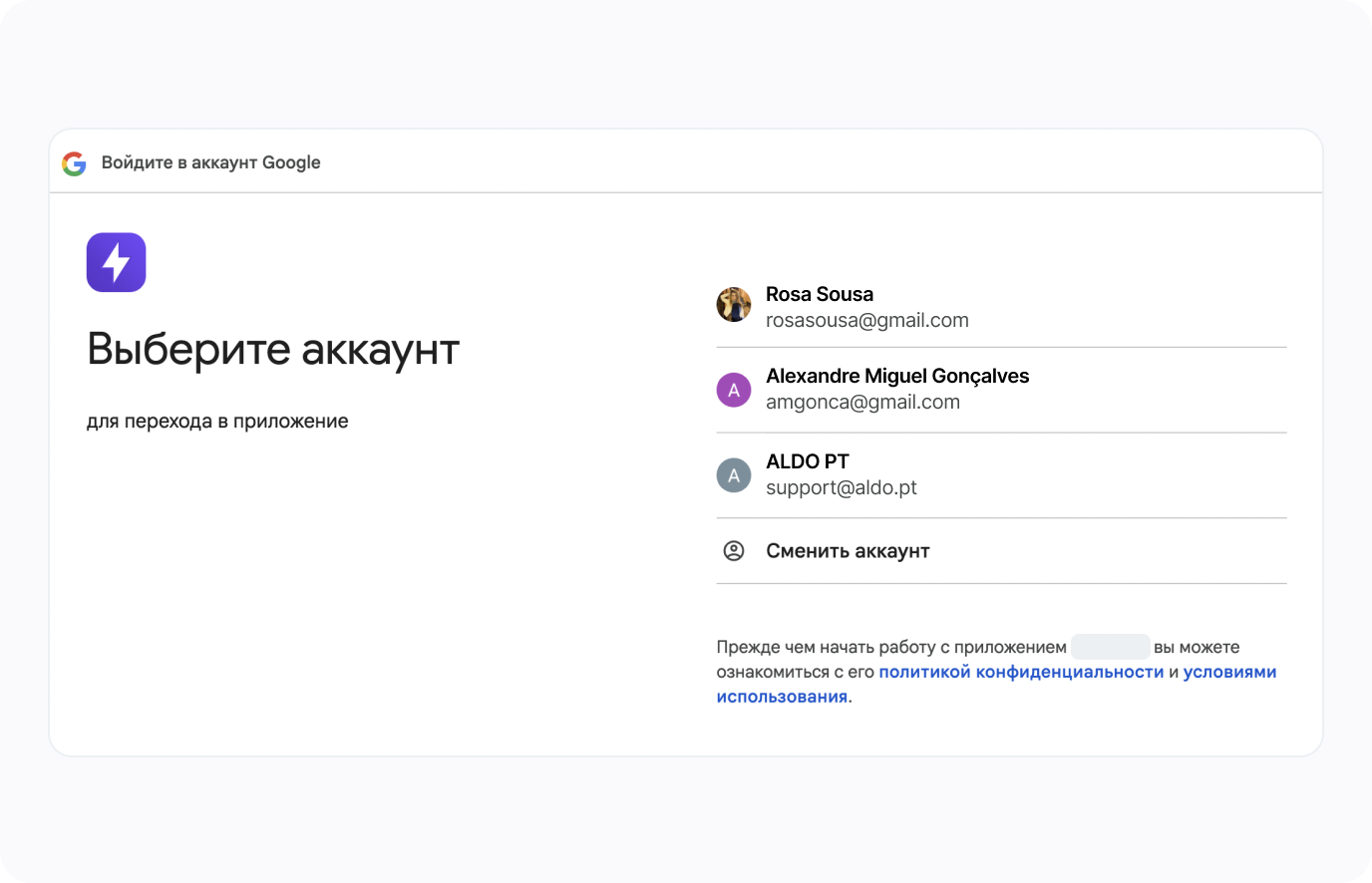 2. Выберите аккаунт в Google, который связан с нужным каналом для подачи заявки.